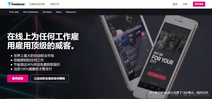 全球知名的自由职业者平台,涵盖软件开发、设计、剪辑和运营等多种程序员自由远程工作,适合各个水平的程序员寻找适合自己的外包接单项目。