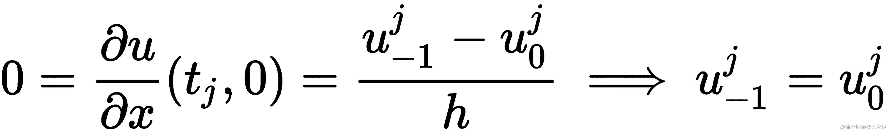 这在物理上可以被解释为杆的两端被绝缘,因此热量不能通过端点逃逸。对于这种边界条件,我们需要稍微修改矩阵A,但方法本质上保持不变。实际上,在边界的左侧插入一个虚拟的x值,并在左边界(x = 0)使用向后有限差分,我们得到