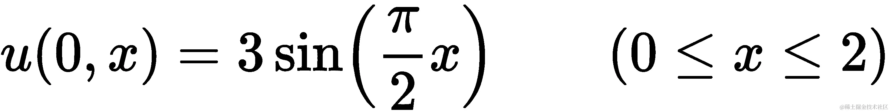 我们在这个例子中给出的边界条件代表了杆的两端保持在恒定温度为 0。这种边界条件有时被称为Dirichlet边界条件。还有Neumann边界条件,其中函数u的导数在边界处给定。例如,我们可能已经给出了边界条件