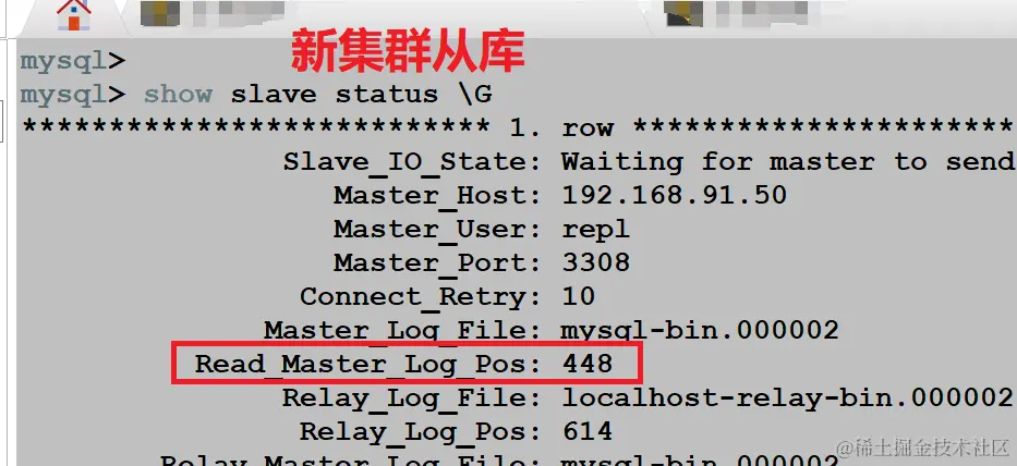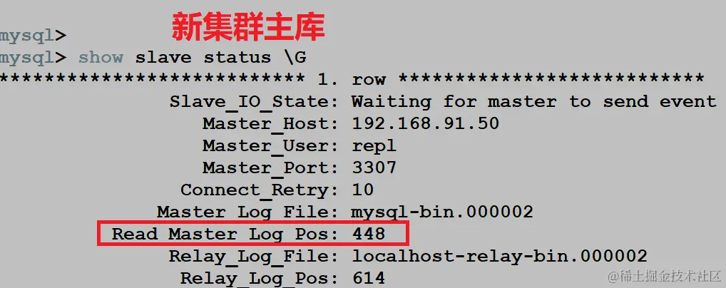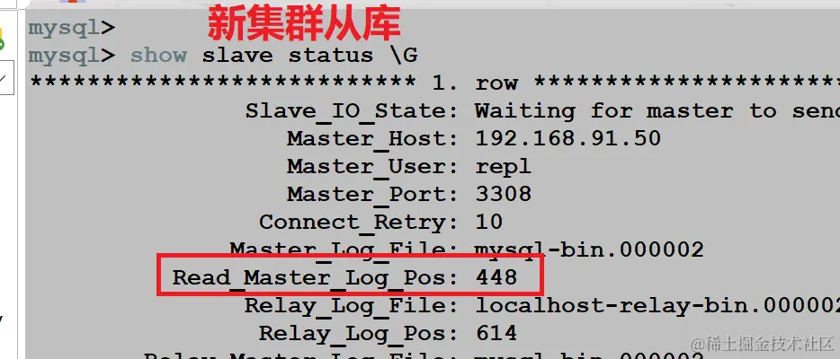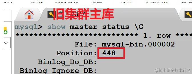 除此之外,我们还专门在旧集群主库上进行了创建库,插入数据操作,观察 positon 位置点的变化信息。