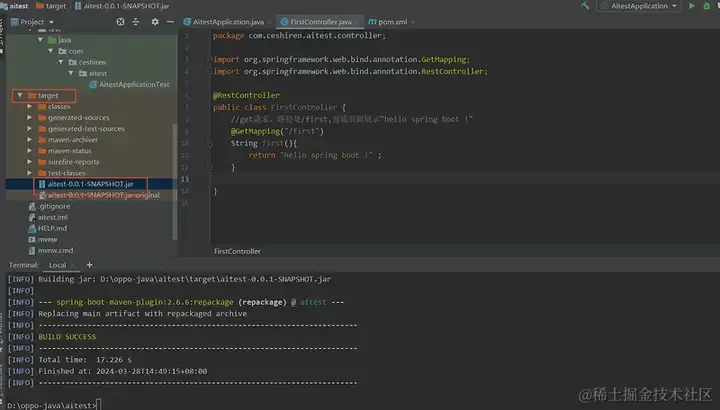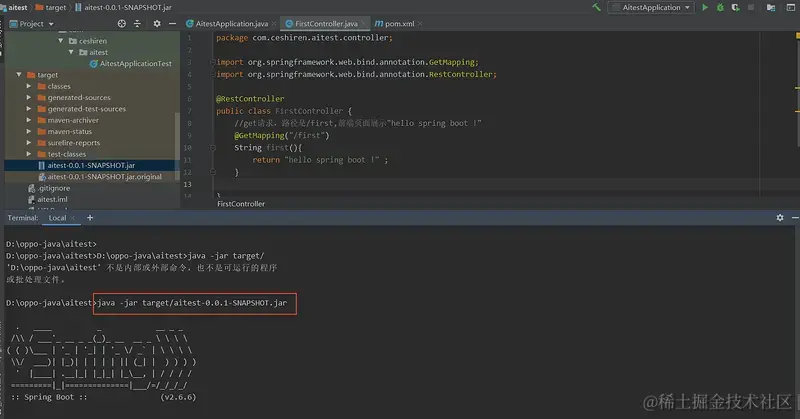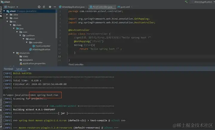 - mvn spring-boot:run 命令执行(执行之前如果有对应的jar包,要先清除jar包)