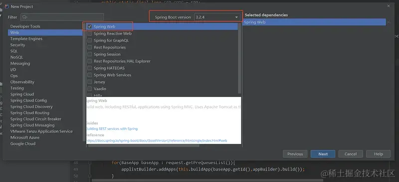 Dependencies的ADD DEPENDENCIES添加Spring Web - 4.填写对应的
