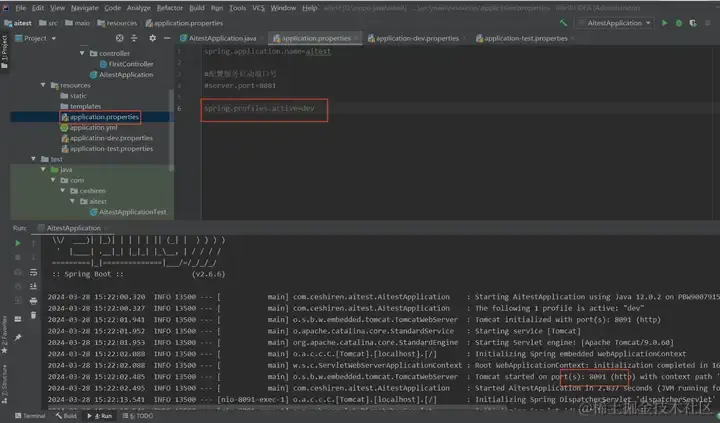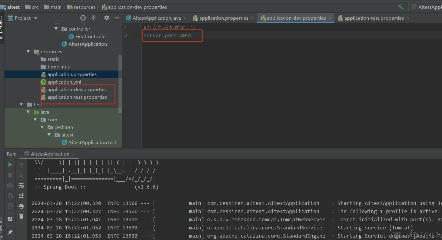 - 新增dev和test环境的配置文件,并分别设置端口号为8091和8092