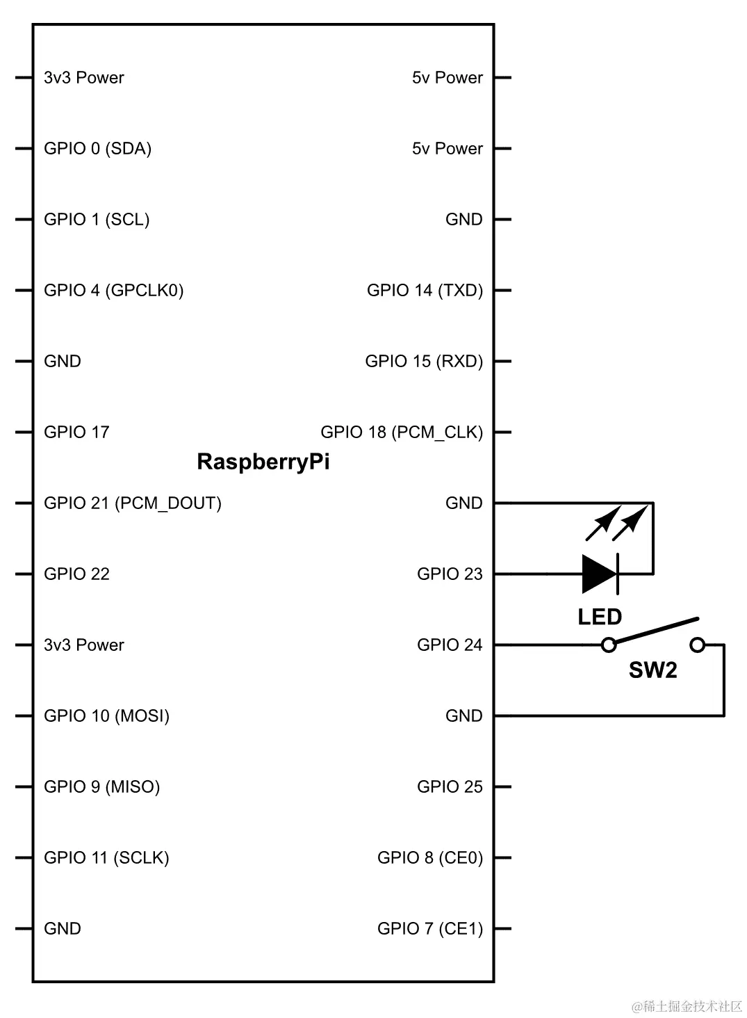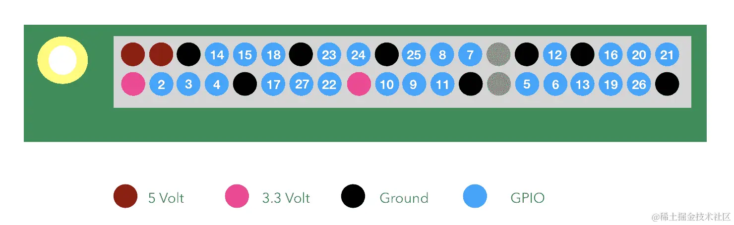正如您所看到的,树莓派能够为我们提供两种类型的电源供应:3.3V 和 5V。这基本上可以满足我们大部分的需求。