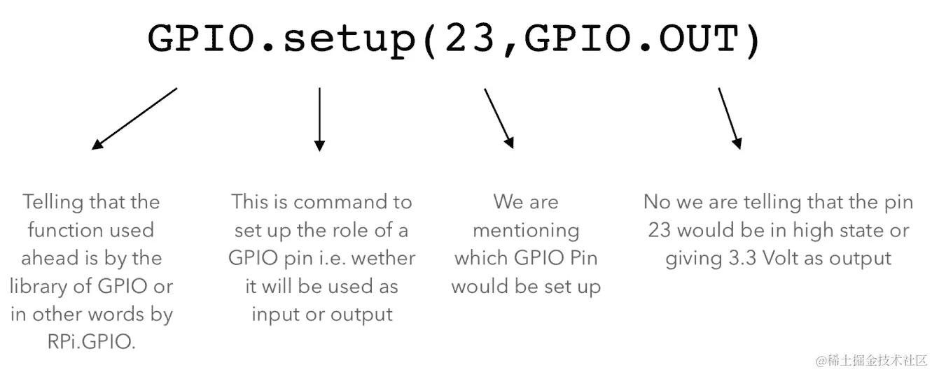 GPIO.out(23,GPIO.High): 它会将引脚23设置为高电平 -