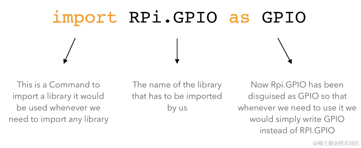 现在,回到重点。我们正在调用RPi.GPIO库;这是由树莓派定义的库。这将使您在编程树莓派时更加轻松。因此,在程序中,一旦我们调用库,所有函数都可以随时使用。