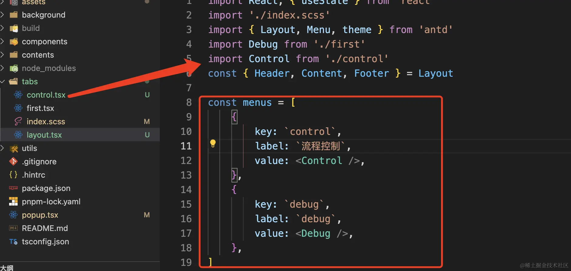 然后将这个menus和antd的菜单项做一个渲染: