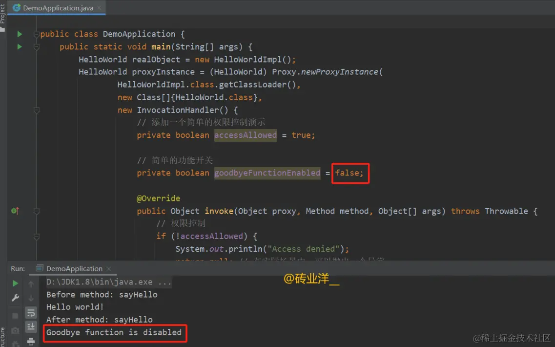 proxyInstance.sayGoodbye(); // 可以根据goodbyeFunctionEnabled变量决定是否执行