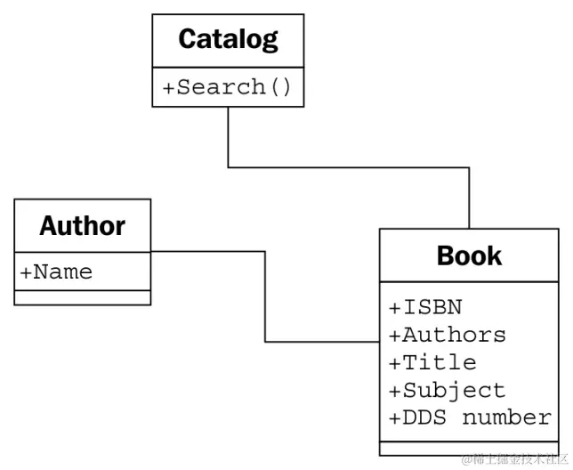 我们已经确定了书上的一些属性,但目录有什么属性?任何一个图书馆有多个目录吗?我们需要对它们进行唯一标识吗?显然,目录必须有它包含的书的集合,但这个列表可能不是公共接口的一部分。