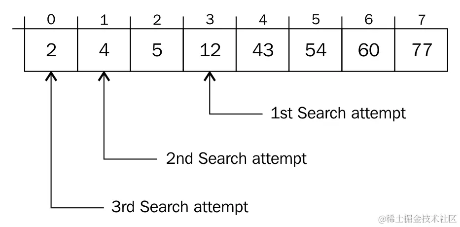 现在,我们只需开始在列表中寻找具有我们正在搜索的键的元素,从具有传入键的哈希值的元素开始。如果当前元素不是正确的元素,那么就像在put()方法中一样,我们在先前的哈希值上加一,并取除以列表大小的余数。这就成为我们的新索引。如果我们找到包含None的元素,我们停止寻找。如果我们找到我们的键,我们返回值: