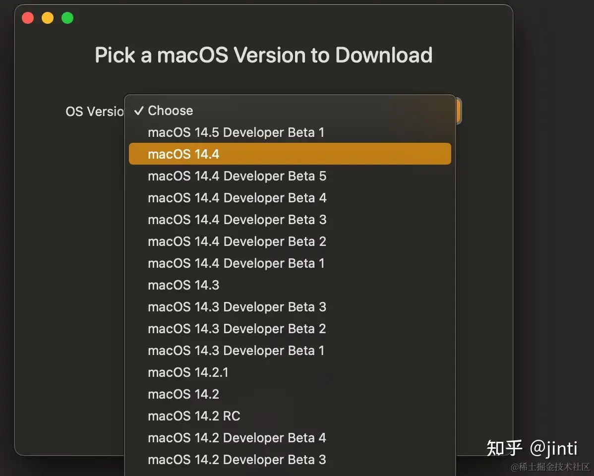 - 选择一个版本的MacOS系统