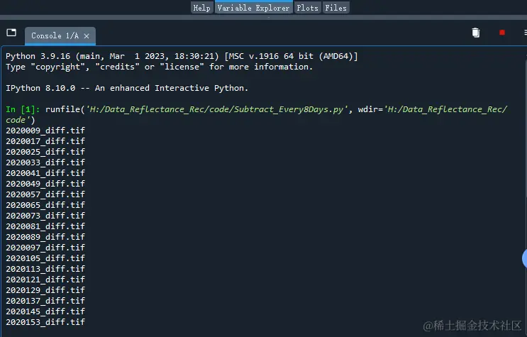 运行上述代码。首先,在运行过程中,会显示当前已经计算好的差值结果文件的文件名,如下图所示;从而方便我们获取代码的执行进度。