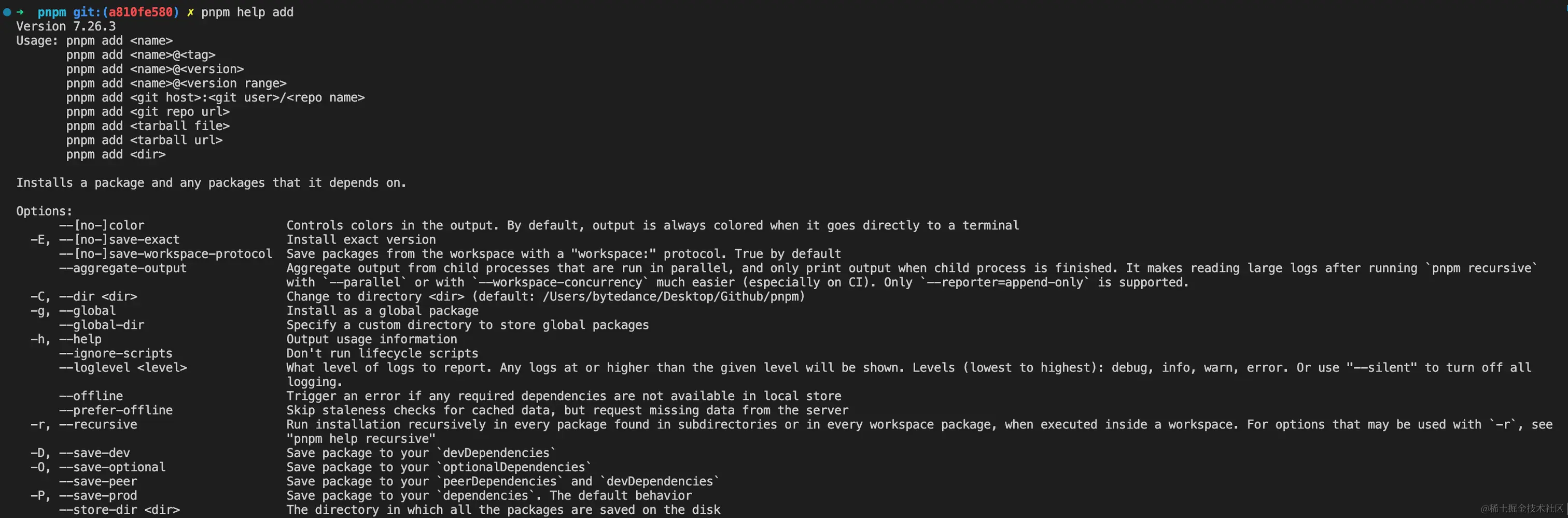 可以看到 pnpm add 指向的是 pnpm 中默认的 add 命令而非 script 中注册的 add。