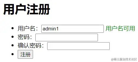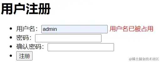 // // 如果在users中找到相同的则返回该用户名已经被注册