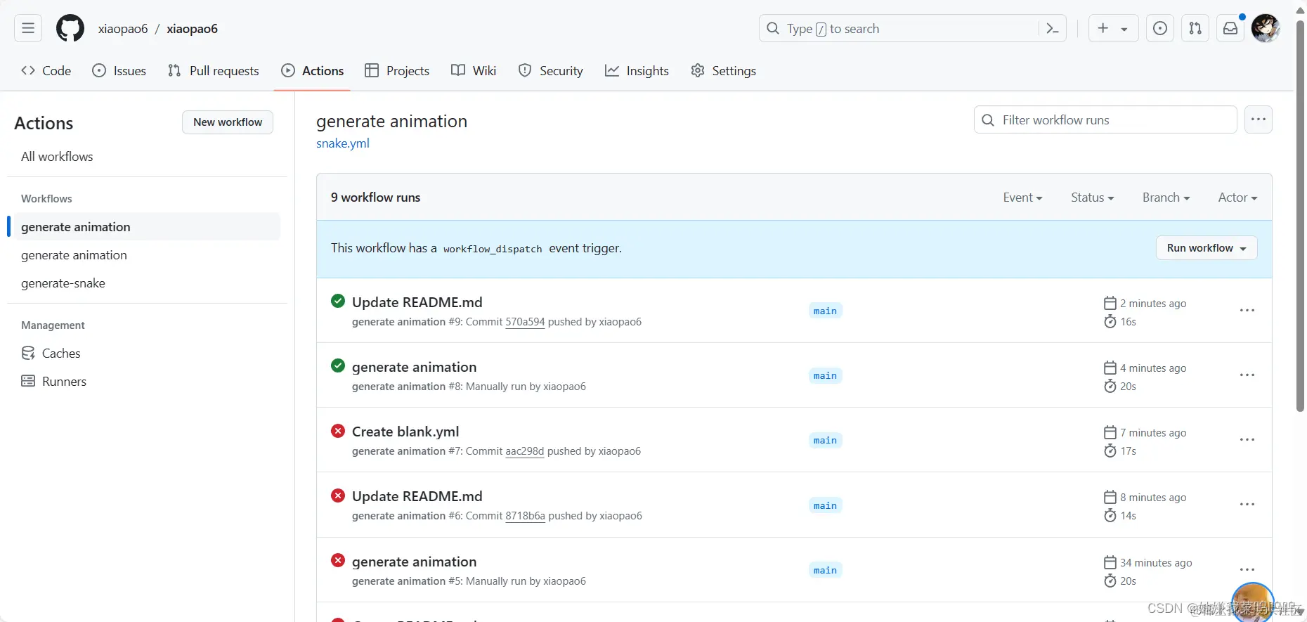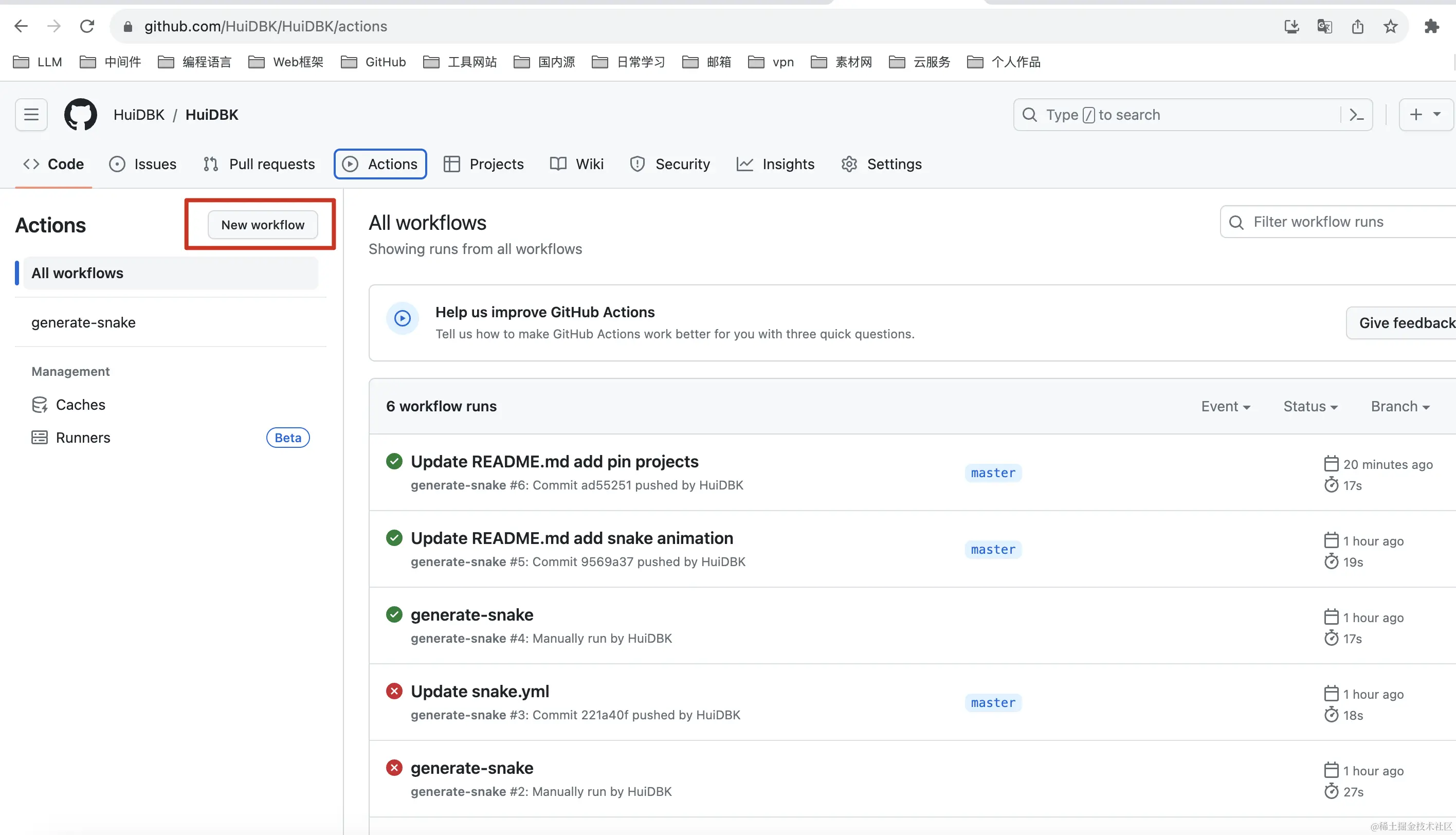 这个制作麻烦一些,需要通过Github的action来生成贪吃蛇动态图