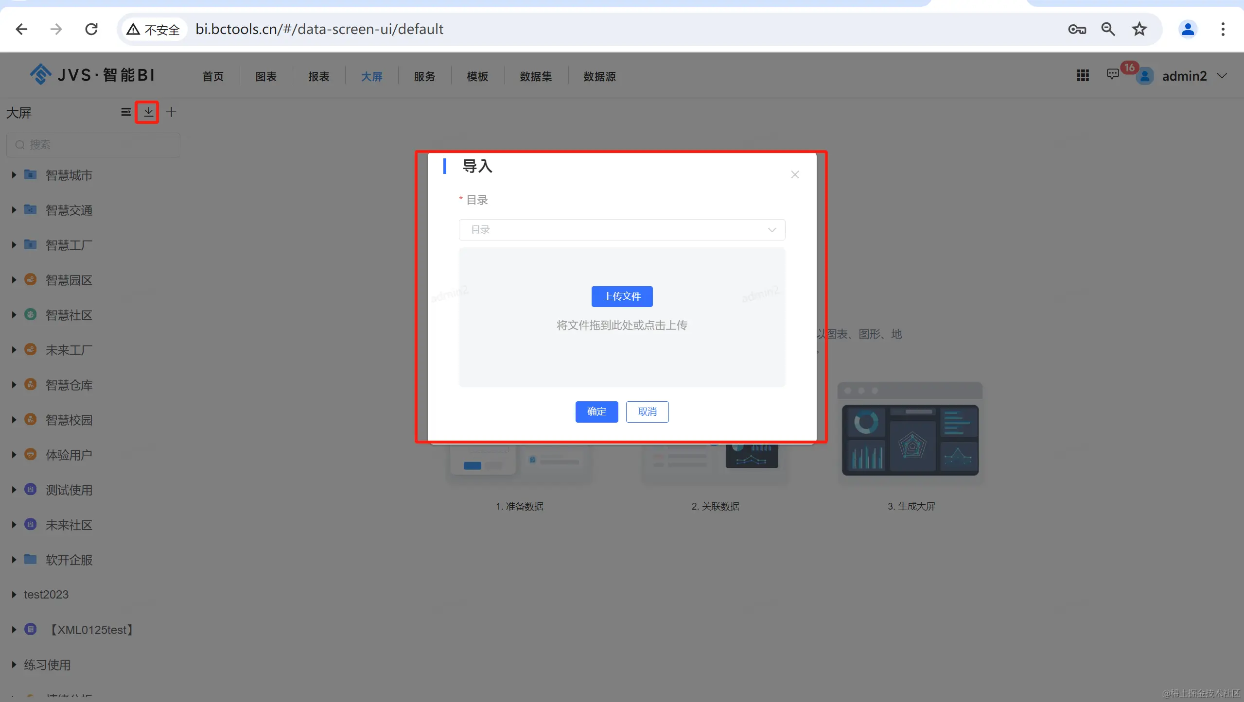 1.大屏新增导入导出功能;