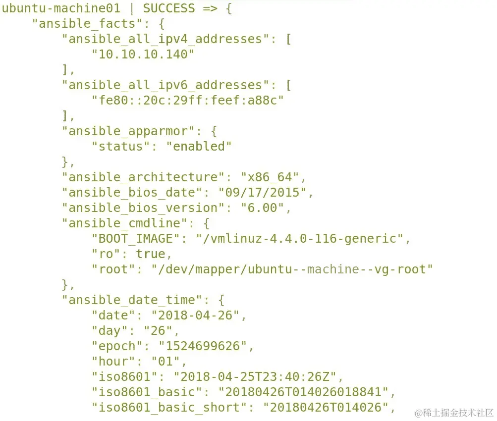 执行的结果以json格式返回到 Ansible 主机,因此您可以通过了解其键来匹配任何返回的值: