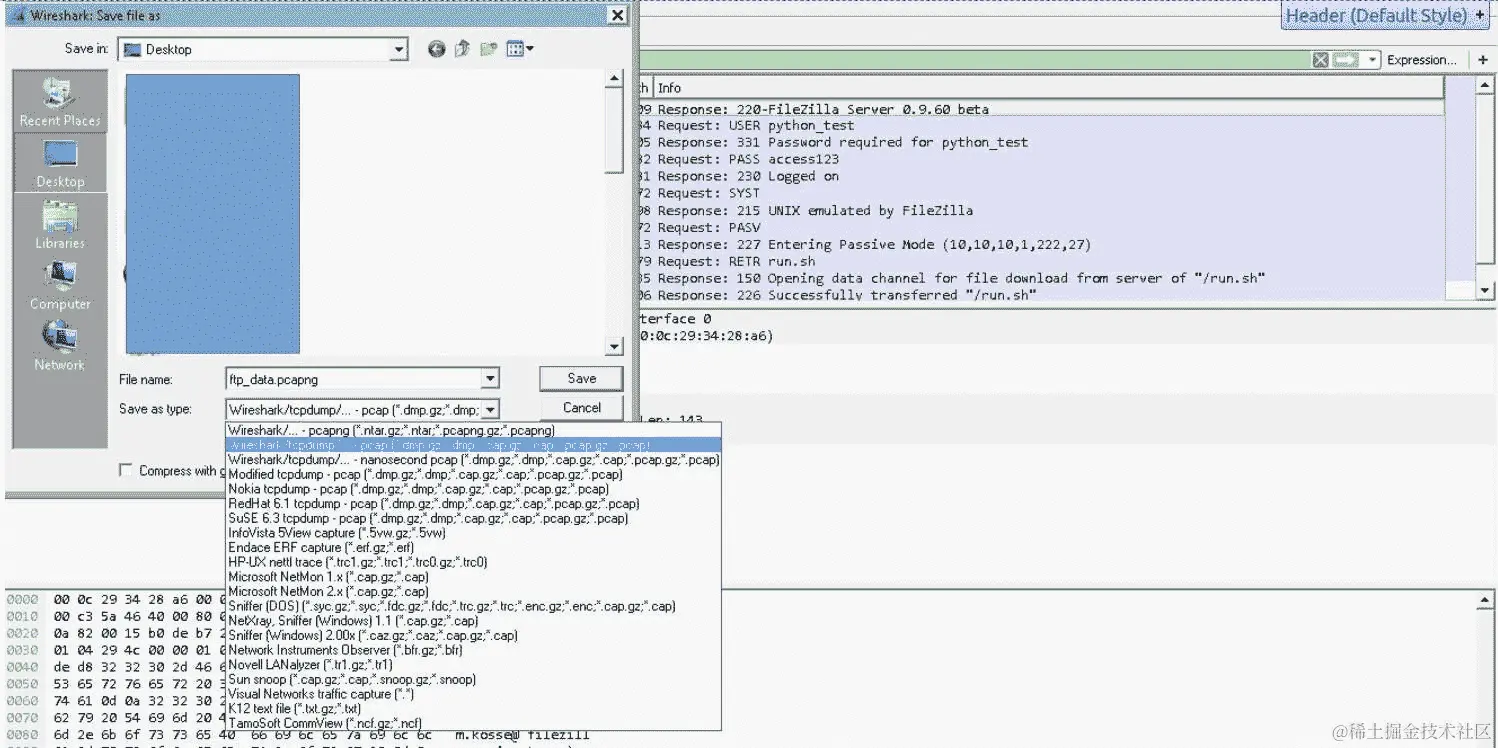 为了避免在读取pcap文件时出现任何错误,请确保将您的pcap文件保存(或导出)为 Wireshark/tcpdump 格式,如下所示,而不是默认格式: