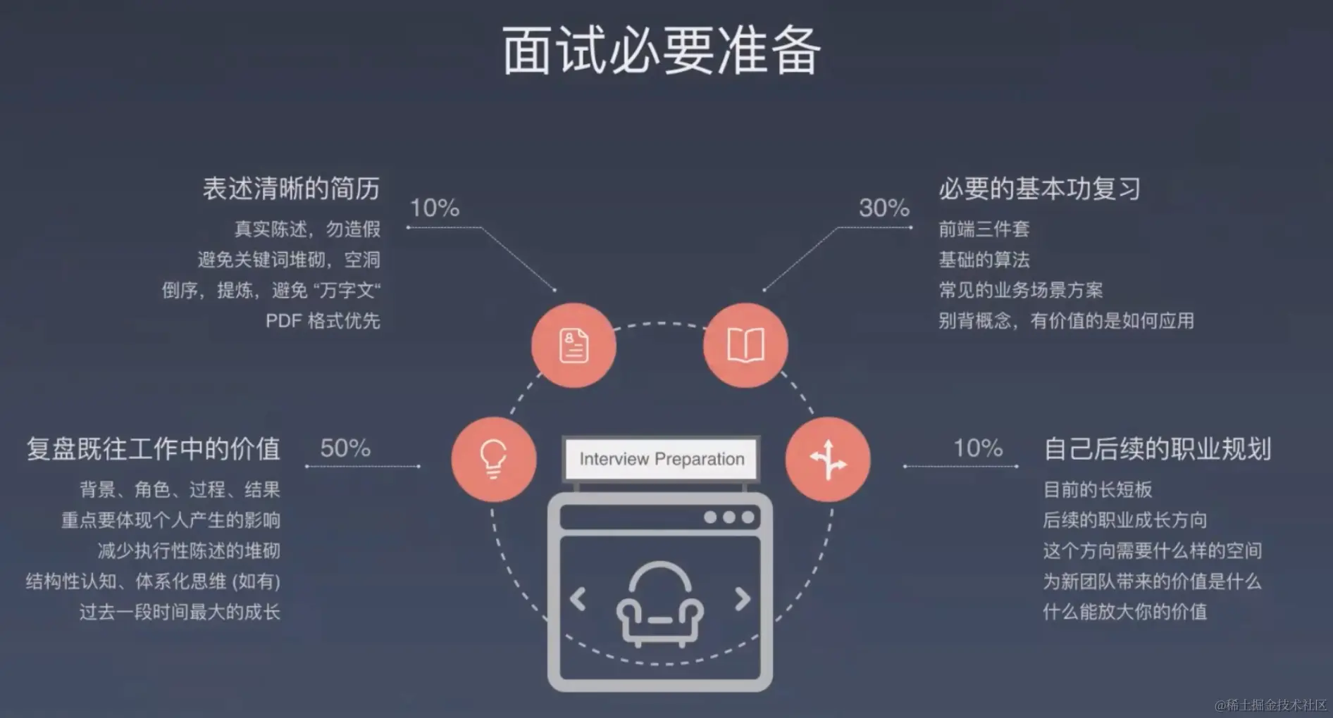 独特亮点:自己的核心竞争力(亮点)!!! 深度、广度、领域、业务(自我认知清晰) 和补足