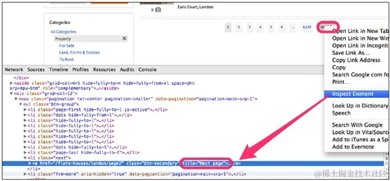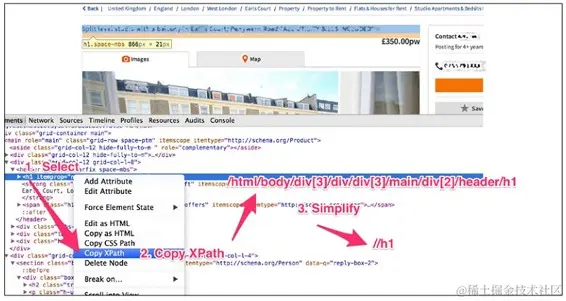 例如,访问伦敦房地产首页www.gumtree.com/flats-house…,你就可以找到许多房子的 URL。右键复制链接地址,就可以复制 URL。其中一个 URL 可能是这样的:www.gumtree.com/p/studios-b…。但是,Gumtree 的网站变动之后,URL 的 XPath 表达式会失效。不添加用户头的话,Gumtree 也不会响应。这个留给以后再说,现在如果你想加载一个网页,你可以使用 Scrapy 终端,如下所示:
