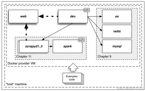 本书大多数章节使用了两个服务——开发机和网络机。我们在开发机中登录运行 Scrapy,在网络机中进行抓取。后面的章节会使用更多的服务,包括数据库和大数据处理引擎。