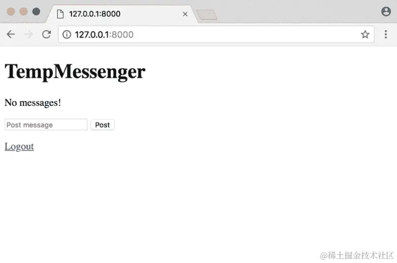 在home.html中,让我们更新我们的页面,包括用户注销的链接。为此,我们将在postMessage表单之后添加一个新链接: