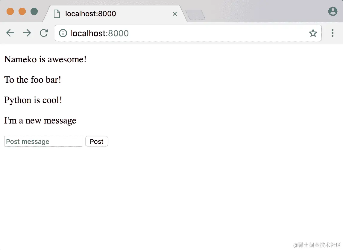 还要确保重新启动我们的消息服务,以使新更改生效。一旦你做到了,我们就可以测试这个新功能: