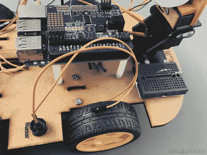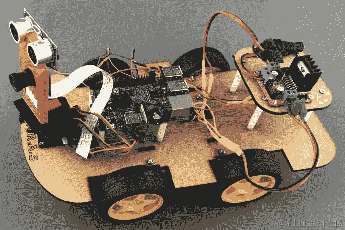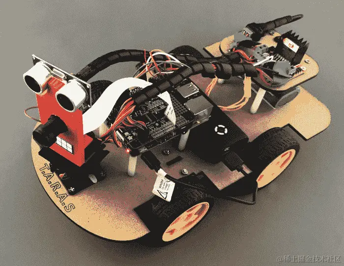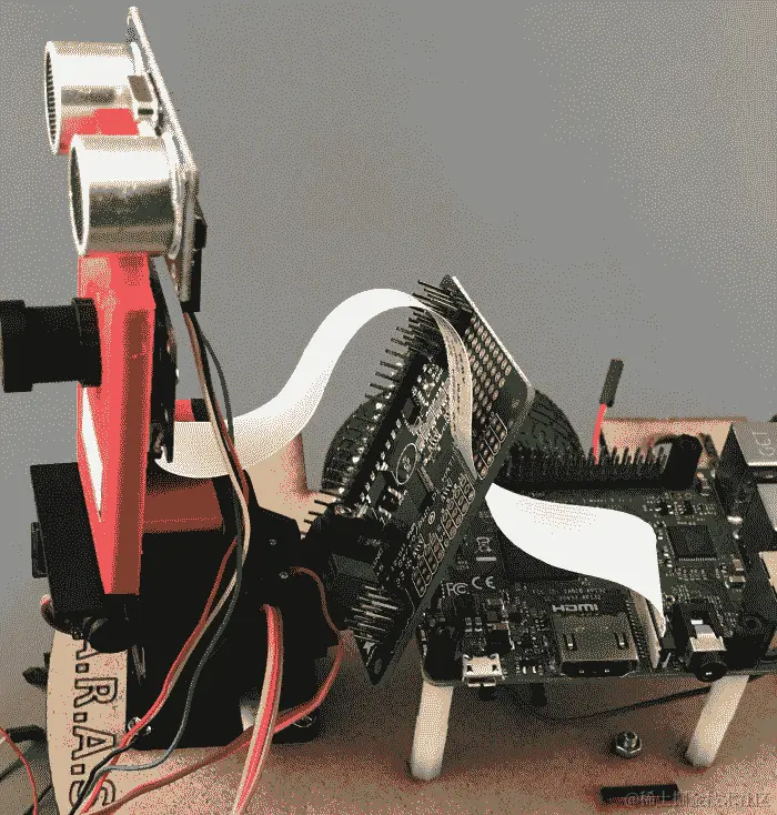 机器人车开始看起来像一辆机器人车。在这一步中,我们将安装摄像头支架(或 T.A.R.A.S 的头部)和树莓派。
