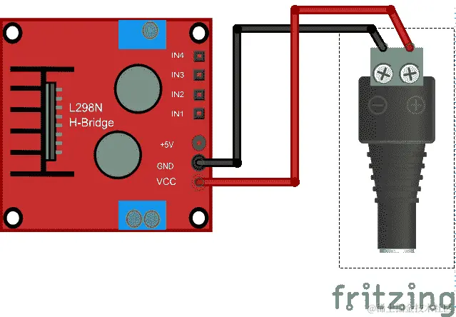 从 Servo HAT 电源端子(HAT 左侧)的+5V 到电机驱动板的+5V(使用更粗的电线)