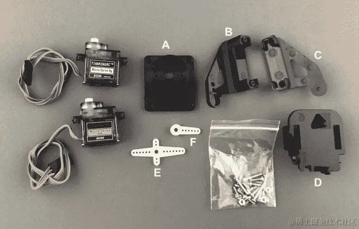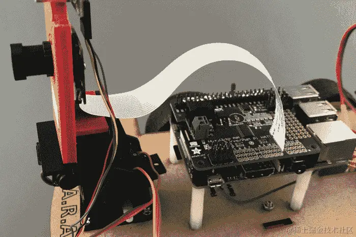 现在,让我们安装摄像头支架,连接摄像头,并安装 Adafruit 舵机板: