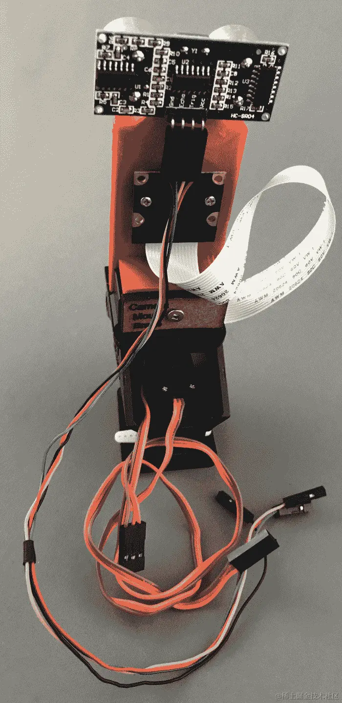 从摄像头支架(倾斜)中间的舵机到舵机 HAT 上的一号舵机