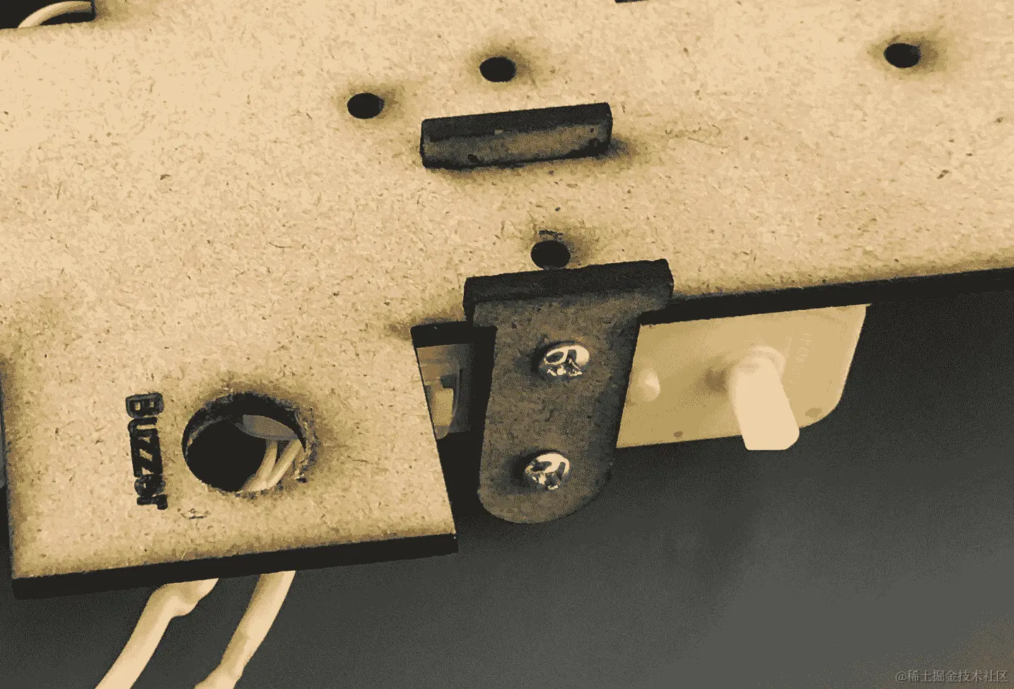 主动蜂鸣器上的棕色线连接到舵机 HAT 上的 GND