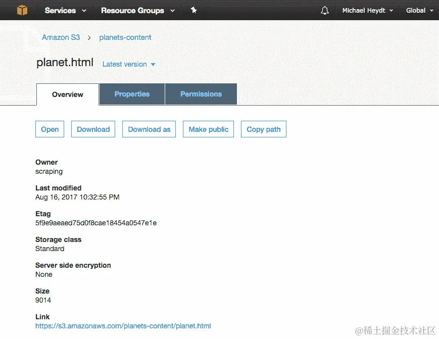 您可以在以下网址找到有关 S3 的更多信息:https://aws.amazon.com/s3/。有关 API 详细信息的具体内容,请访问:https://aws.amazon.com/documentation/s3/。