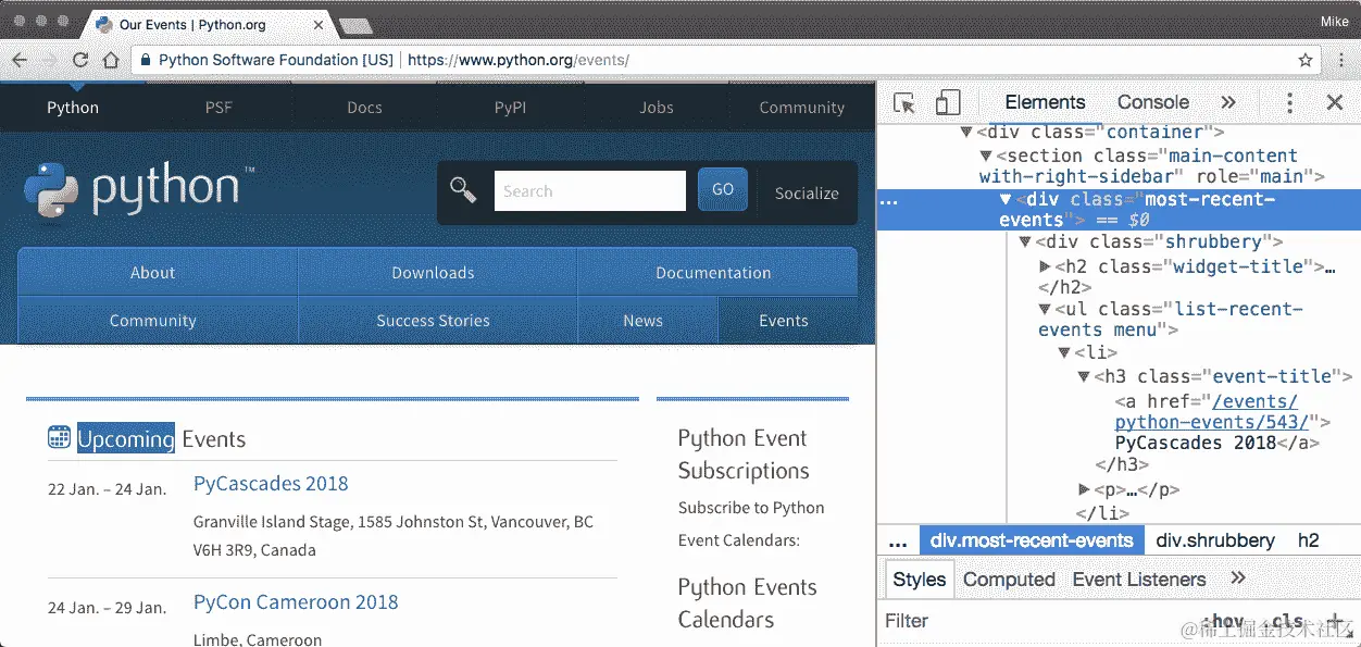 使用 Requests 和 Beautiful Soup 爬取 Python.org