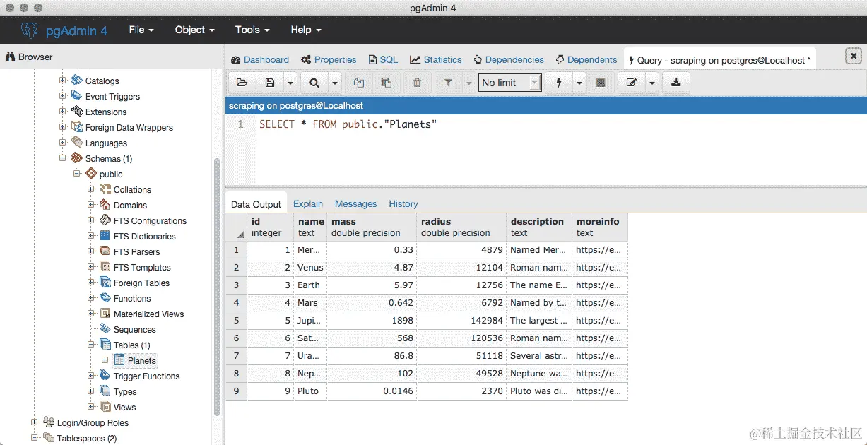 例如,我们将构建一个非常简单的 ETL 过程,该过程将读取主行星页面并将行星数据存储在 MySQL 中。它还将针对页面中的每个更多信息链接传递单个消息到队列中,其中 0 个或多个进程可以接收这些请求,并对这些链接执行进一步处理。