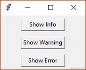 在前面的准备就绪部分提到的三个对话框是使用tkinter.messagebox模块中的showinfo、showwarning和showerror函数打开的: