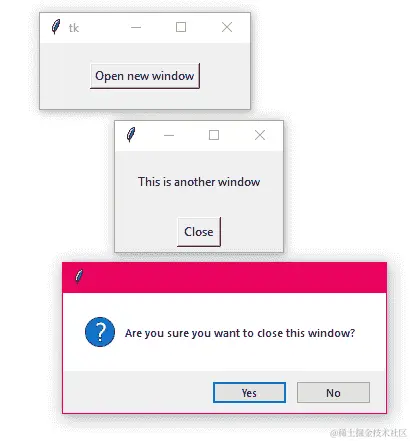 到目前为止,我们只学习了如何创建一个与 Tcl 解释器关联的根窗口。但是,Tkinter 允许我们在同一个应用程序下创建多个顶级窗口,并且还包括具有内置对话框的特定模块。