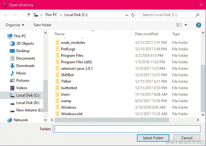 第二个按钮将是选择目录,并且它将打开一个类似的对话框以选择目录: