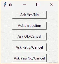 Tkinter 中包括的其他类型的对话框是用于要求用户确认的对话框,例如当我们要保存文件并且要覆盖同名文件时显示的对话框。