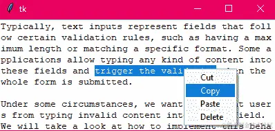 在前面部分提到的代码片段中,关键是调用self.update_idletasks()。由于这一点,按钮状态的更改在调用time.sleep()之前由 Tkinter 处理。因此,在回调被暂停的一秒钟内,按钮具有期望的外观,而不是 Tkinter 在调用回调之前设置的ACTIVE状态。