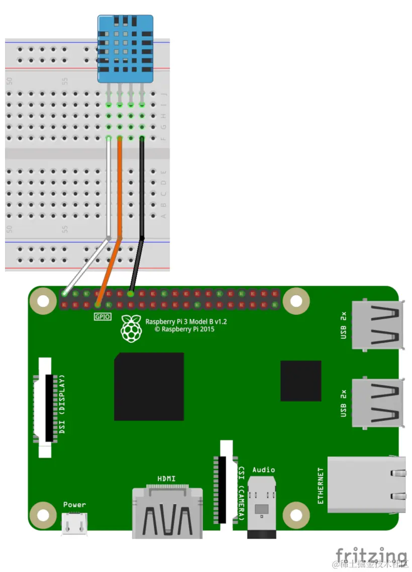 首先,关闭树莓派的电源,让我们向电路中添加一些组件,如下图所示:
