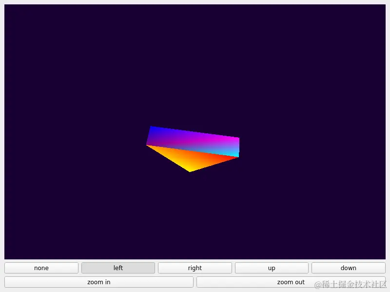 然后在main()中,我们将该颜色分配给内置的gl_FragColor变量。这个着色器的有效作用是告诉 OpenGL 使用vertex着色器传入的颜色值来确定单个片段的颜色。