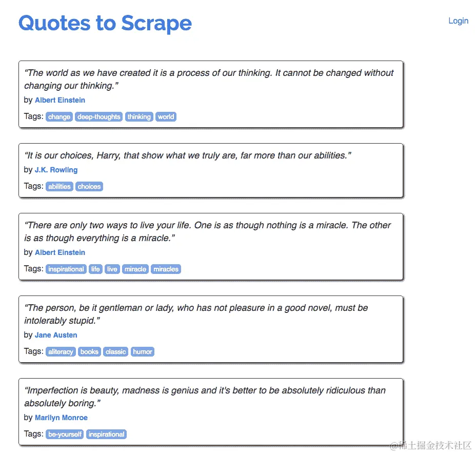 This page is secured,只有在登录成功时才会返回。当成功运行时,我们将从我们的爬虫的打印语句中看到以下输出: