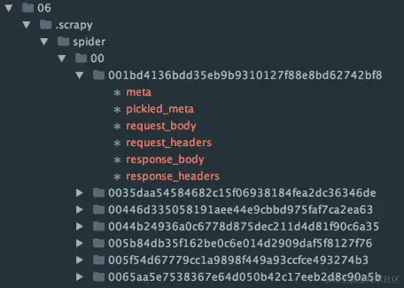 第一次执行后,您会发现您的目录中现在有一个.scrapy文件夹,其中包含缓存数据。 结构将如下所示: