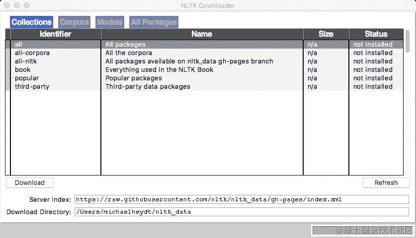 一些过程,比如我们将使用的过程,需要额外下载它们用于执行各种分析的各种数据集。可以通过执行以下操作来下载它们:安装 NLTK
