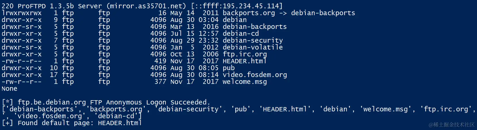 在这个例子中,我们连接到一个 FTP 服务器,以从ftp.be.debian.org服务器下载一个二进制文件。