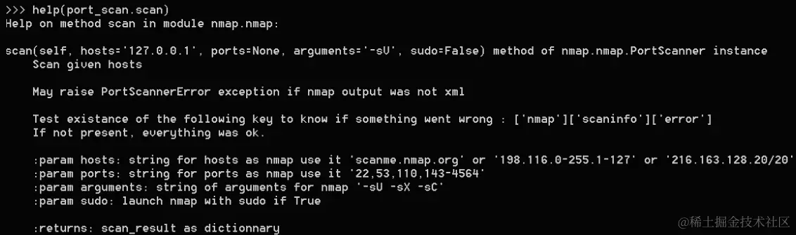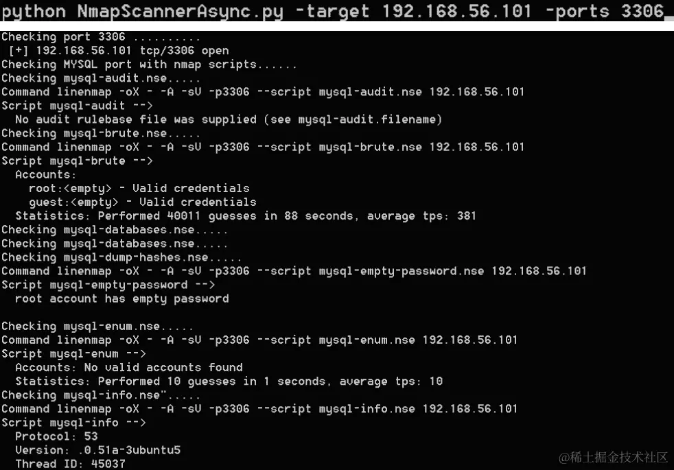 与python-msfprc一样,使用此模块,我们还可以连接到控制台并像在 msfconsole 中那样运行命令。我们可以通过两种方式实现这一点。第一种是在激活 exploit 后使用 scan 对象。第二种是使用 console 对象以与 msfconsole 交互时相同的方式执行命令。