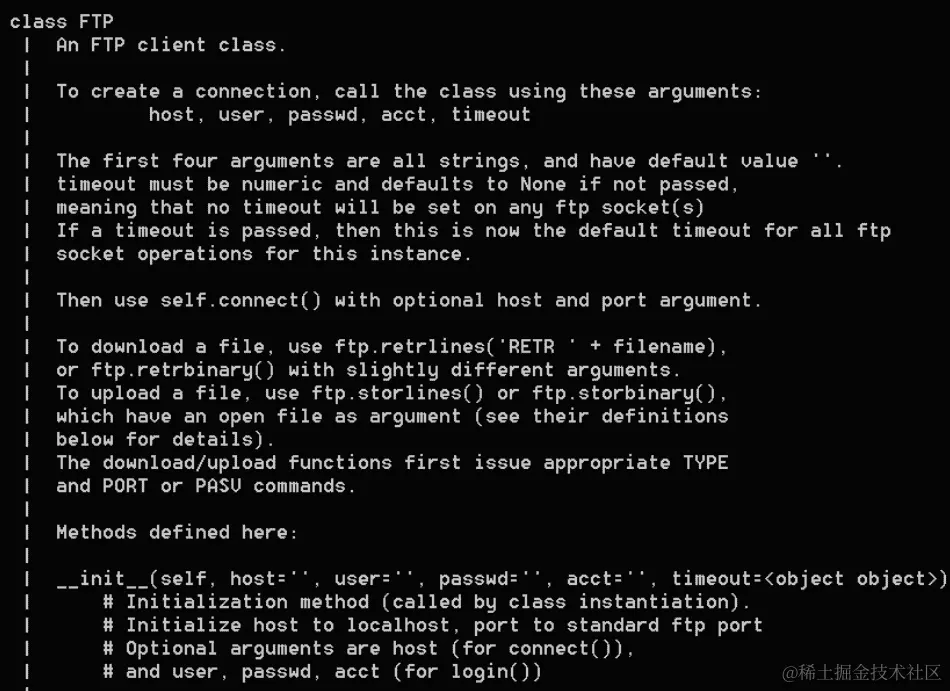 在这个截图中,我们可以看到更多关于FTP类和init方法构造函数的参数的信息: