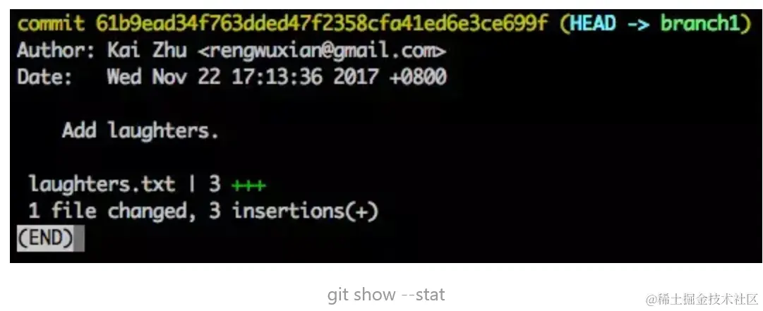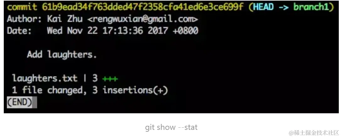 假设此时当前 commit 的改动内容是新增了 laughters.txt 文件:
