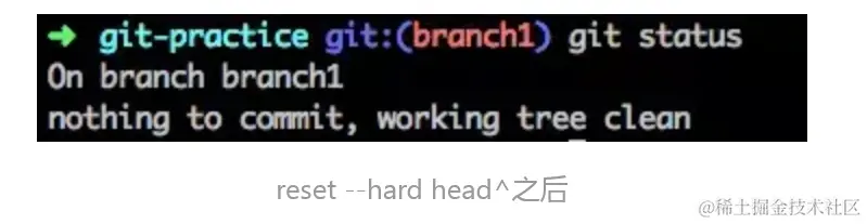 然后,你执行了reset并附上了**--hard**参数: